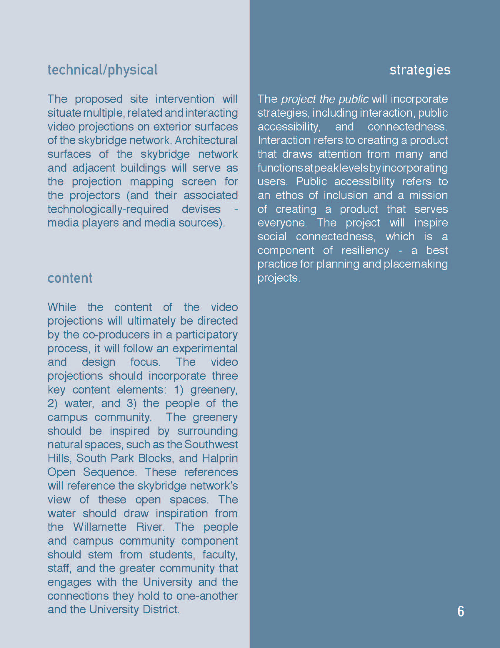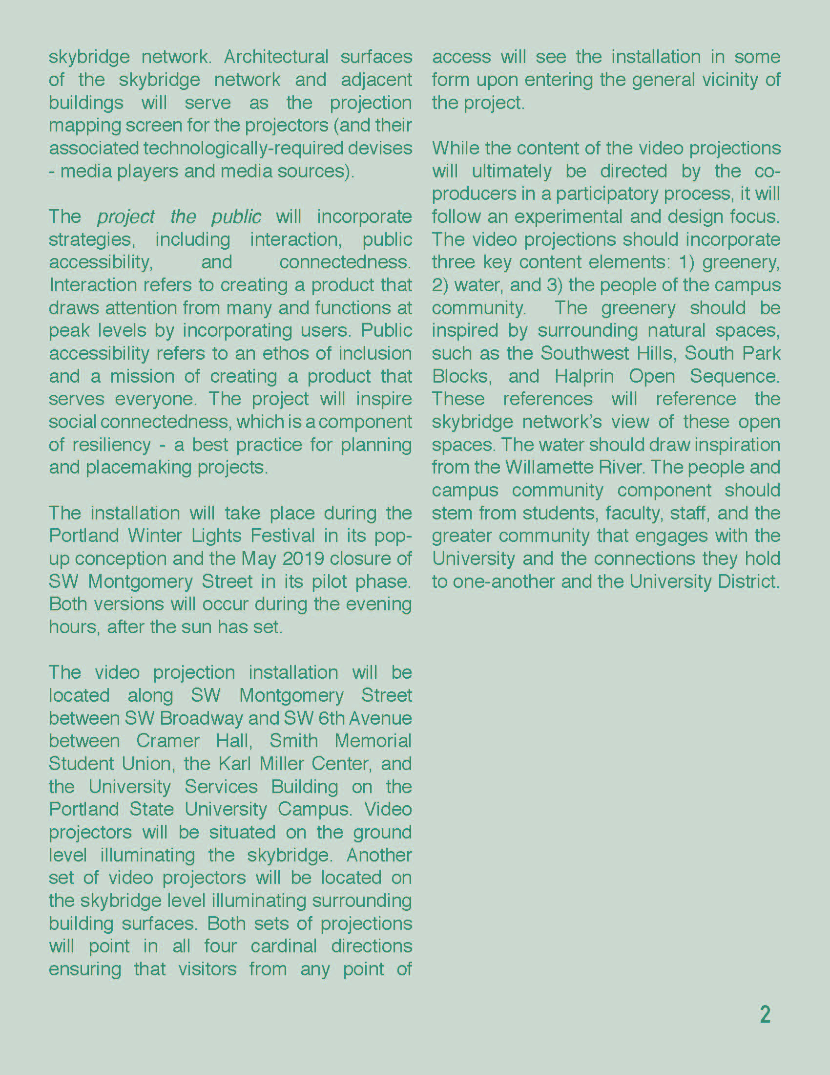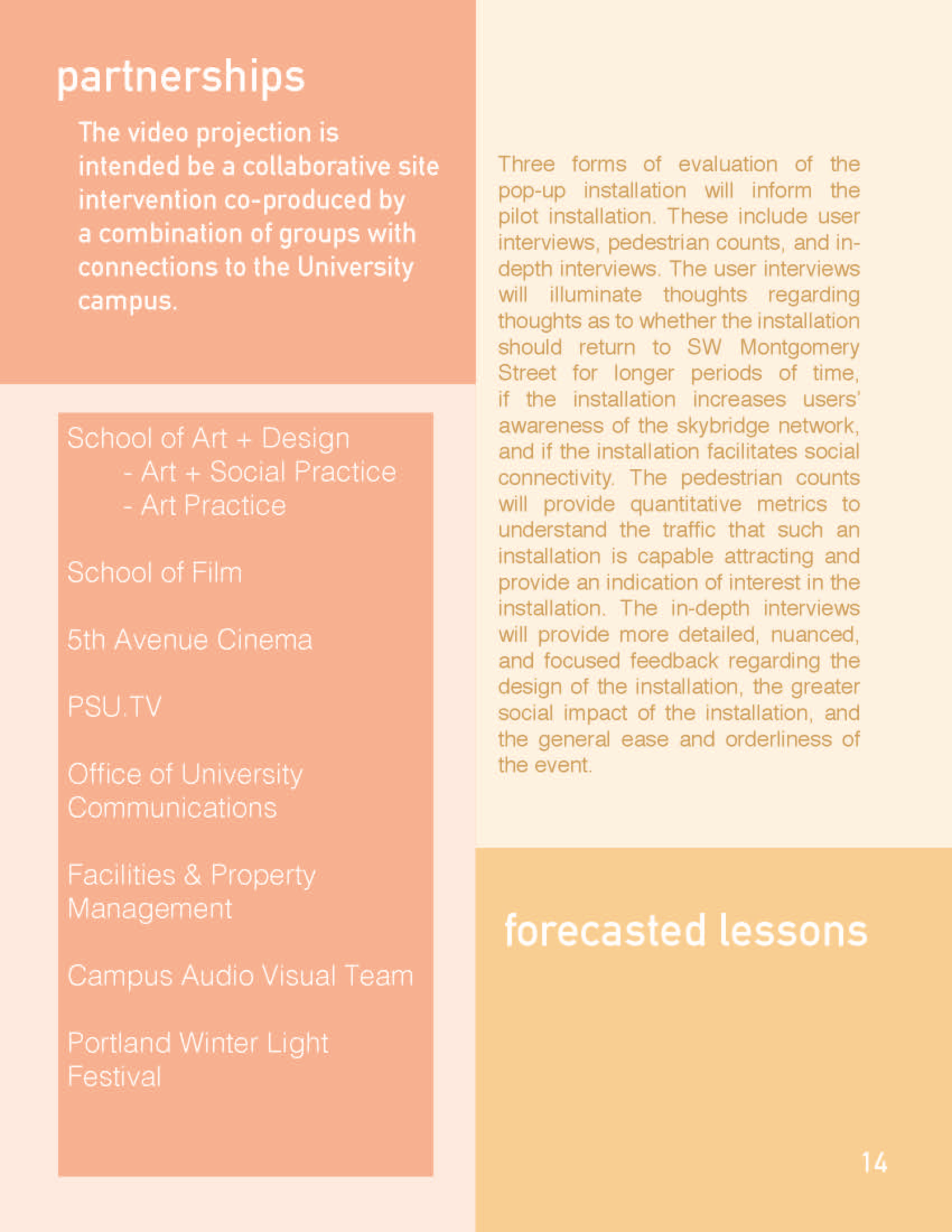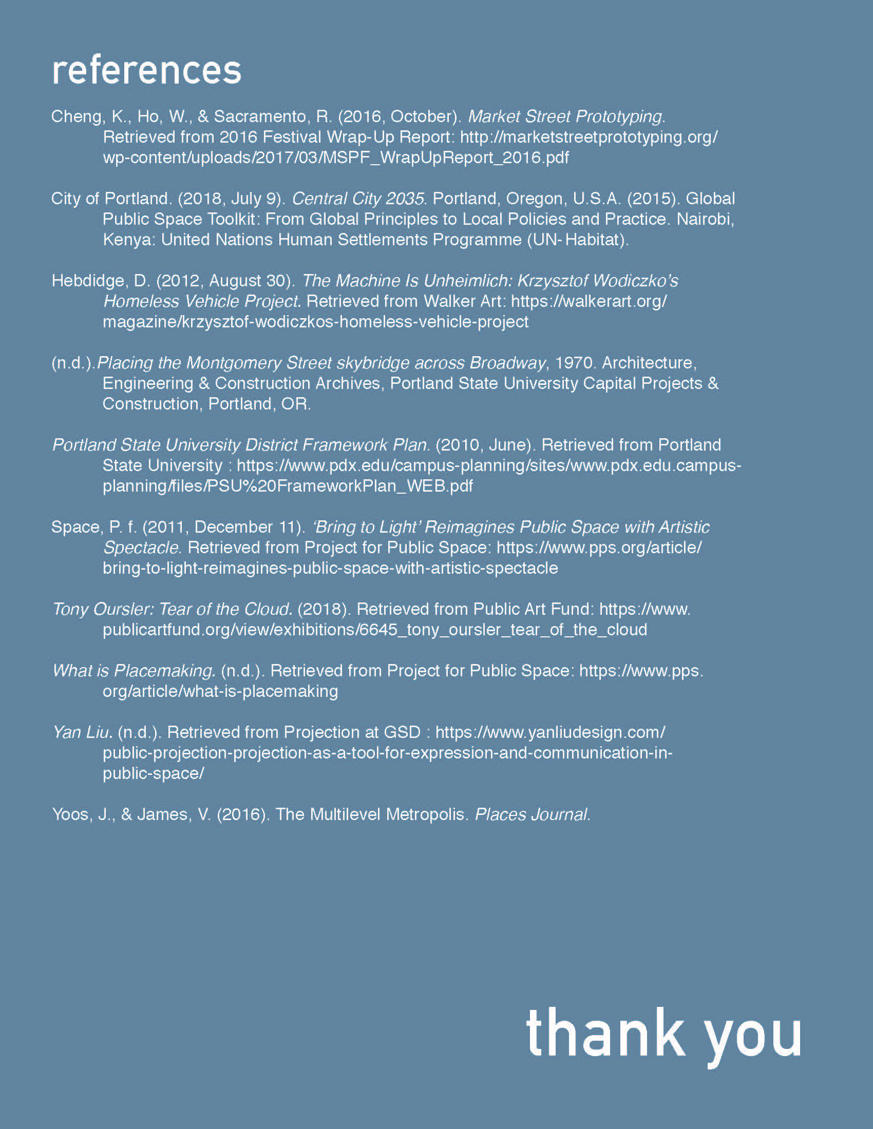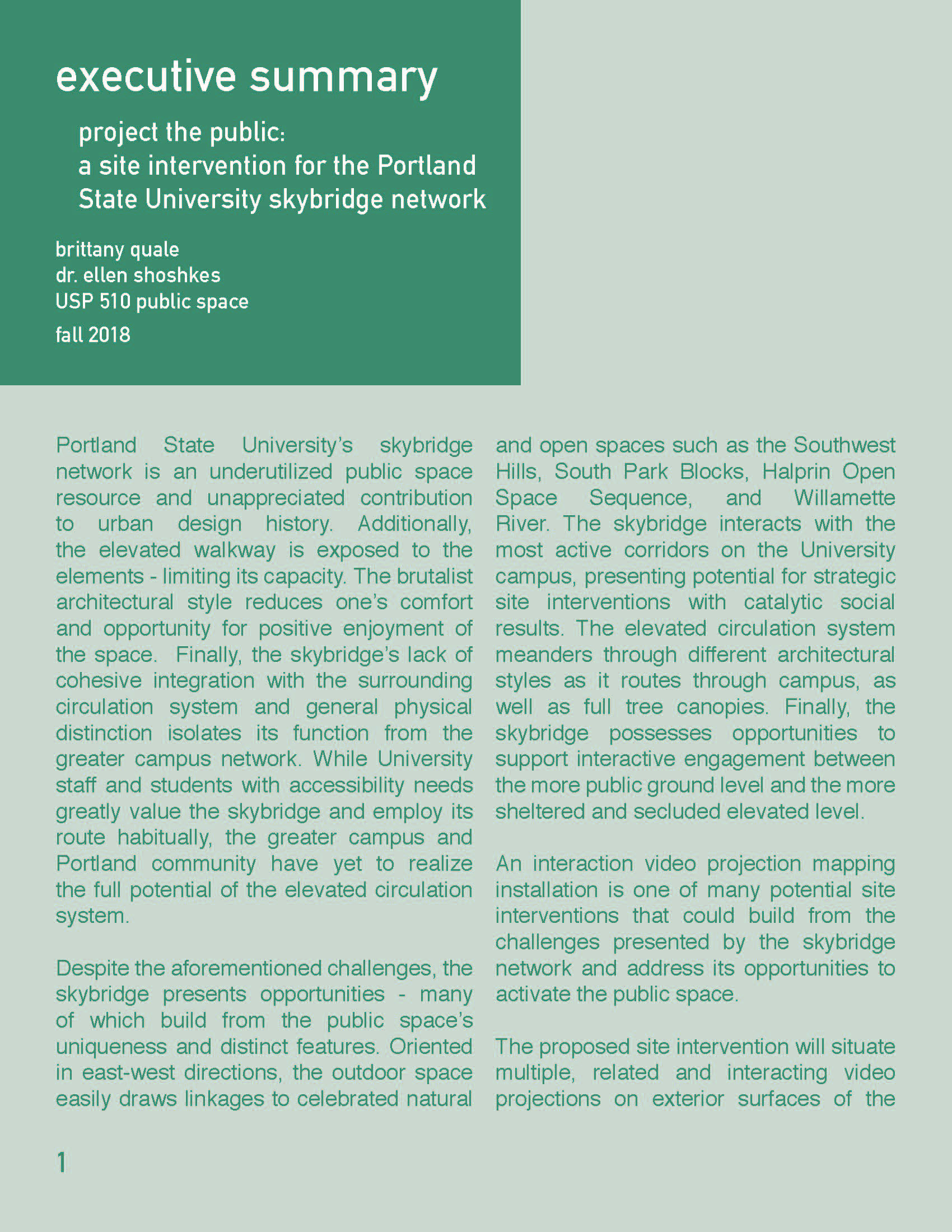 I created "Project the Public" as a site intervention proposal for the Portland State University skybridge network as part of Dr. Ellen Shoshkes' "USP 510 Public Space" class. 2018.